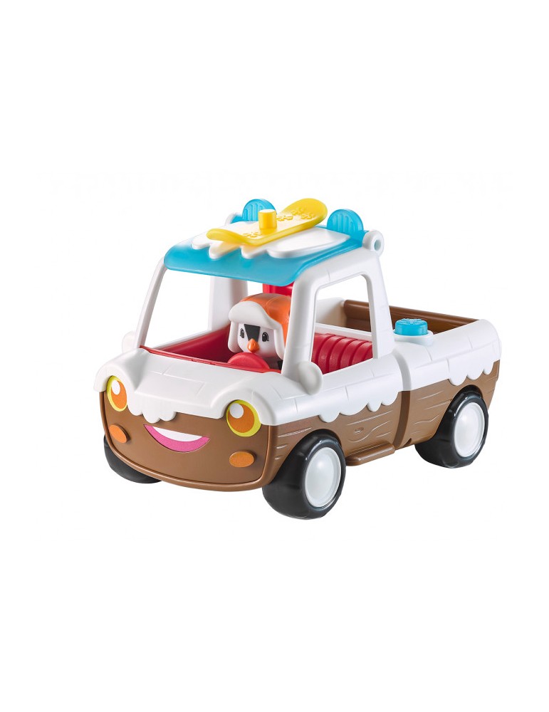 Pratique, le toit s’ouvre pour insérer facilement les personnages dans la cabine. Rigolo, le coffre s’ouvre. Puis, en appuyant sur le flocon, le personnage sur la luge, les skis ou le snowboard s’éjecte comme par magie !